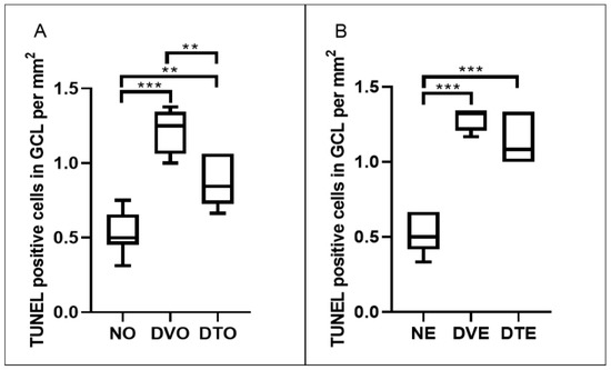 2.6. Assessment of Retinal Cell Apoptosis with Terminal Transferase dUTP Nick End Labeling (TUNEL Staining)