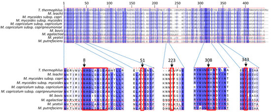 - Barre, A.; de Daruvar, A.; Blanchard, A. MolliGen, a database dedicated to the comparative genomics of Mollicutes. Nucleic Acids Res. 2004, 32, D307–D310. [Google Scholar] [CrossRef][Green Version]