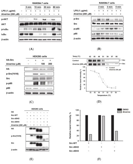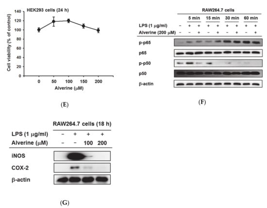 APA StyleLee, C. Y., Kim, H. G., Park, S. H., Jang, S. G., Park, K. J., Kim, D. S., Kim, J. H., & Cho, J. Y. (2020). Anti-Inflammatory Functions of Alverine via Targeting Src in the NF-κB Pathway. Biomolecules, 10(4), 611. https://doi.org/10.3390/biom10040611