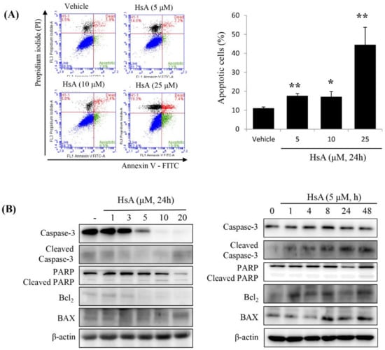 3.1. HsA Reduces Proliferation of Hepatocellular Carcinoma Cells