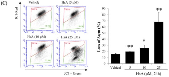 3.3. HsA Induces Apoptosis and Mitochondrial Dysfunction in Huh7 Cells