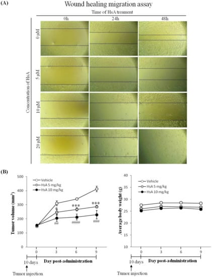 3.5. HsA Inhibits Tumor Migration, Growth and Proliferation