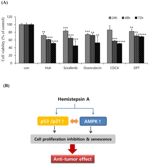 Chicago/Turabian StyleBaek, Su Youn, Ui Wook Hwang, Ho Young Suk, and Young Woo Kim. 2020. "Hemistepsin A Inhibits Cell Proliferation and Induces G0/G1-Phase Arrest, Cellular Senescence and Apoptosis Via the AMPK and p53/p21 Signals in Human Hepatocellular Carcinoma" Biomolecules 10, no. 5: 713. https://doi.org/10.3390/biom10050713