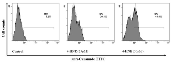 Flow cytometry analysis of ceramide positive cells in HNE-treated RBCs: Image is representative of six independent experiments carried out in triplicate.