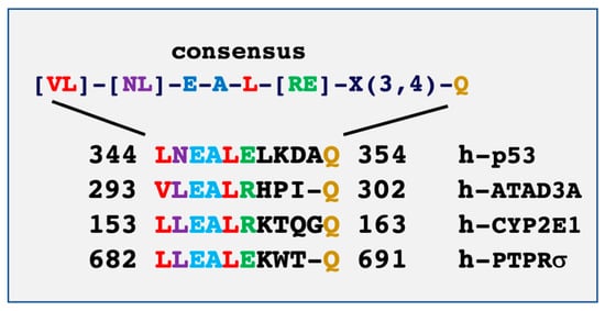 Sequence alignment of the S100B binding domains on p53 and ATAD3A defines a consensus sequence motif called NEAL motif. [20]. The consensus S100B-binding NEAL motif is present in the mitochondrial protein CYP2E1 and in the extracellular receptor protein RPTPσ.