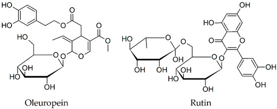 In vivo neuroprotective effects of a daily dose of 100 mg/kg rutin orally administrated for 6 weeks were investigated by Xu et al. [70] in a double transgenic APPswe/PS1dE9 mice model. Compared with the control group, the rutin-treated APPswe/PS1dE9 mice showed a reduction in Aβ oligomers levels by approximatively 60.8% and 31.7%, respectively, as identified with oligomer-specific A11 and W20 antibodies in dot-blot analysis correlated with an attenuation of spatial memory deficits. In addition, rutin therapy downregulated microgliosis and astrocytosis; increased the activity of superoxide dis-mutase and antioxidant glutathione and its oxidized form ratio; reduced glutathione peroxidase and malondialdehyde levels, as well as decreased interleukin-6 and interleukin-1β levels in the AD mouse brains. Taken together, these findings suggest that rutin (Figure 5) neuroprotective effects occur by inhibiting the activation of glial cells and attenuating inflammatory cytokine production.