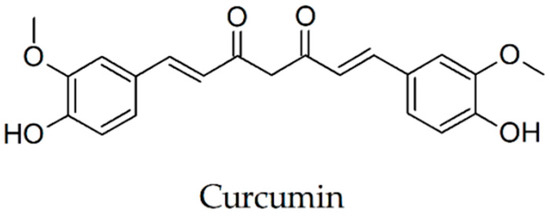 Wang et al. [75] in a research on APPswe/PS1dE9 transgenic mice evaluated the efficacy and mechanisms of curcumin gavage on the prevention and therapy of AD in doses of 400, 200 and 100 mg/kg/day (suspended in 0.5% sodium carboxymethyl cellulose solution) for 3 months. Behavioural tests have shown that medium- and high-doses of curcumin treatment can improve spatial learning and memory capacity in these mice. Immunohistochemical and Western blot analyses revealed a reduction of Aβ(1-40), Aβ(1-42) and aggregation of amyloid-β in the CA1 hippocampal area; a decrease in the expression of the γ-secretase component presenilin-2 and an intensification in the expression of amyloid-β degrading enzymes. These results suggest that curcumin may reduce pathological aggregation of Aβ, perhaps through mechanisms that inhibit its production, inhibiting presenilin-2 or increasing its clearance by growing degrading enzymes. Due to its multi-target effects, curcumin (Figure 6) is one of the most effective and interesting agents for the development of AD therapeutics.