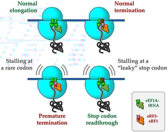 - Baierlein, C.; Krebber, H. Translation termination: New factors and insights. RNA Biol. 2010, 7, 548–550. [Google Scholar] [CrossRef][Green Version]