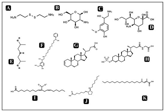- Bellini, A.M.; Mencini, E.; Quaglio, M.P.; Guameri, M.; Fini, A. Antimicrobial activity of basic cholane derivatives. X. Synthesis of 3α- and 3β-amino-5β-cholan-24-oic acids. Steroids 1991, 56, 395–398. [Google Scholar] [CrossRef]
