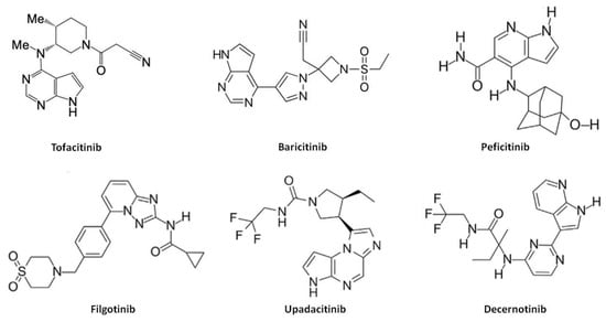 - Markham, A.; Keam, S.J. Peficitinib: First Global Approval. Drugs 2019, 79, 887–891. [Google Scholar] [CrossRef] [PubMed]