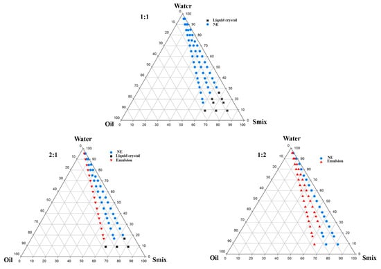 Phase behavior study at Smix ratios of 1:1, 2:1, and 1:2.