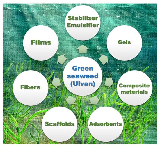 Possible bio-based materials using ulvan polysaccharides as a source.