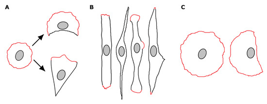 - Dubin-Thaler, B.J.; Hofman, J.M.; Cai, Y.; Xenias, H.; Spielman, I.; Shneidman, A.V.; David, L.A.; Döbereiner, H.-G.; Wiggins, C.H.; Sheetz, M.P. Quantification of Cell Edge Velocities and Traction Forces Reveals Distinct Motility Modules during Cell Spreading. PLoS ONE 2008, 3, e3735. [Google Scholar] [CrossRef] [PubMed]