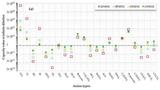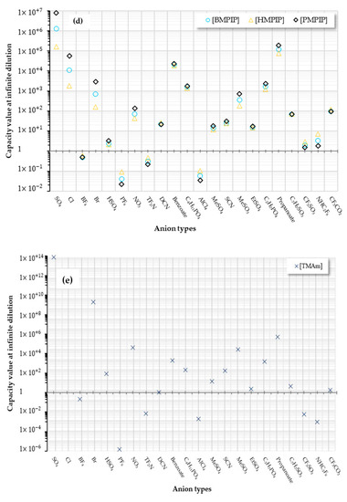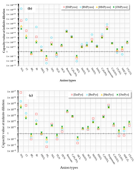 3.3.2. The Effect of Different Anion Types on Capacity Value of ILs