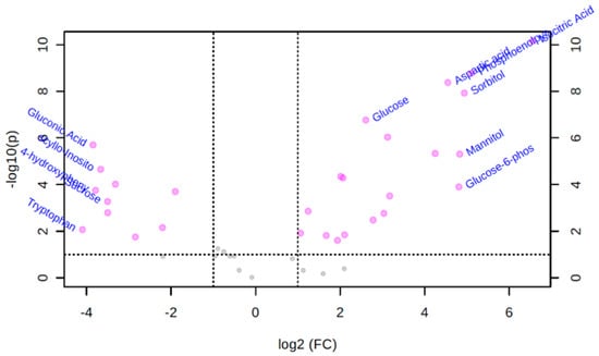 3.3. Univariate Volcano Plot Analysis of Polar Metabolites