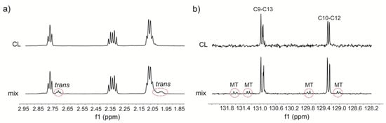 - Bus, J.; Sies, I.; Lie Ken Jie, M.S.F. 13C-NMR of methyl, methylene and carbonyl carbon atoms of methyl alkenoates and alkynoates. Chem. Phys. Lipids 1976, 17, 501–518. [Google Scholar] [CrossRef]