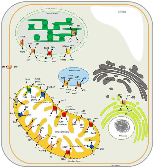 - Palmieri, F.; Rieder, B.; Ventrella, A.; Blanco, E.; Do, P.T.; Nunes-Nesi, A.; Trauth, A.U.; Fiermonte, G.; Tjaden, J.; Agrimi, G.; et al. Molecular identification and functional characterization of Arabidopsis thaliana mitochondrial and chloroplastic NAD+ carrier proteins. J. Biol. Chem. 2009, 284, 31249–31259. [Google Scholar] [CrossRef]