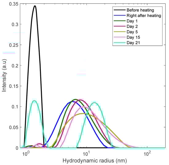 - Takata, S.; Norisuye, T.; Tanaka, N.; Shibayama, M. Heat-Induced Gelation of β-Lactoglobulin. 1. Time-Resolved Dynamic Light Scattering. Macromolecules 2000, 33, 5470–5475. [Google Scholar] [CrossRef]