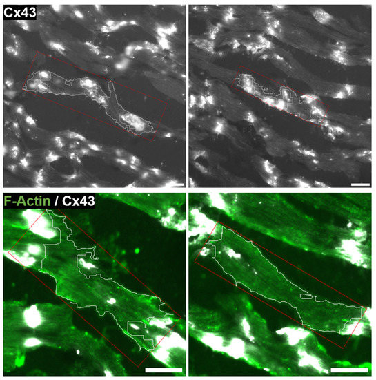 The developed software is not specific of ventricular tissue but could be applicable to evaluate CMs’ morphological characteristics, as well as CX43 expression and distribution in atrial tissue, too. Also, MARTA could find application in the study of lateralization of other proteins involved in cardiac conduction, like CX40 [32].