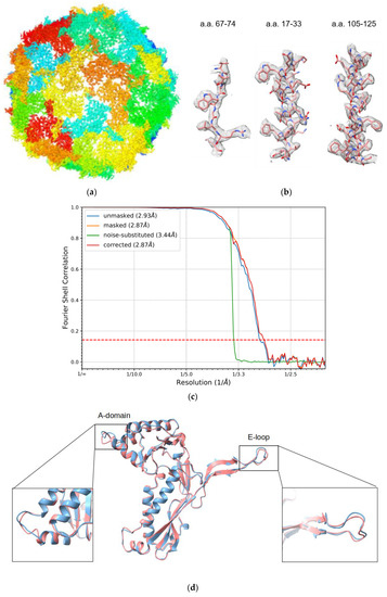 - Liu, Z.; Guo, F.; Wang, F.; Li, T.-C.; Jiang, W. 2.9 Å resolution cryo-EM 3D reconstruction of close-packed virus particles. Structure 2016, 24, 319–328. [Google Scholar] [CrossRef]