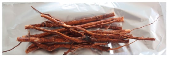 Twenty grams of L. chinensis roots were precisely weighted and extracted with 400 mL of solvent in a Soxhlet apparatus. Extractions were made using either HPLC grade methanol or HPLC grade dichloromethane, and this led to the collection of a polar and a less-polar extract. The extracts were then evaporated at 40 ± 1 °C using a rotating evaporator (Sigma Aldrich, Darmstadt, Germany). The dried extracts were kept at −22 ± 1 °C until use. The polar samples were solubilized in a small amount of pure ethyl alcohol and the non-polar extracts were solubilized in HPLC grade dimethyl sulfoxide. The solvents were added gradually under ultrasonic bath until complete solubilization.