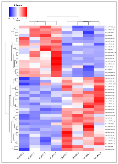 3.2. MiRNA Profile of CB- and AT-MSC-Derived EVs