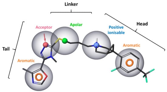 Similar to other aminergic GPCRs, the D3R contains allosteric or secondary binding pockets which are less conserved than the OBS. OBS is highly homologous or even identical in a given subfamily or subgroups of aminergic GPCRs, which makes the development of subtype specific ligands extremely challenging. However, suggested by analyses of aminergic GPCRs, targeting the more divergent extracellular regions can be a possible way to achieve this. The solution can be ligands that bind concomitantly to the OBS and SBP, or allosteric modulators that bind only to SBPs, or compounds that differ in their interactions along entry/exit pathways to the OBS of different receptor subtypes [78]. The first approach is the most common strategy for development of D3R selective ligands. Most of the published D3R selective ligands are common in pharmacophore consisting of a head group, which is positively charged and bear an aromatic ring, and a heteroaromatic tail connected by an apolar linker region (Figure 3) [79]. This heteroaromatic tail which binds to the secondary binding pocket of the D3R is responsible for the high selectivity over the D2R (i.e., Ki,D2/Ki,D3 > 100) and can fine-tune the functional character of the ligands [80]. The linker may also be important in this regard [81].