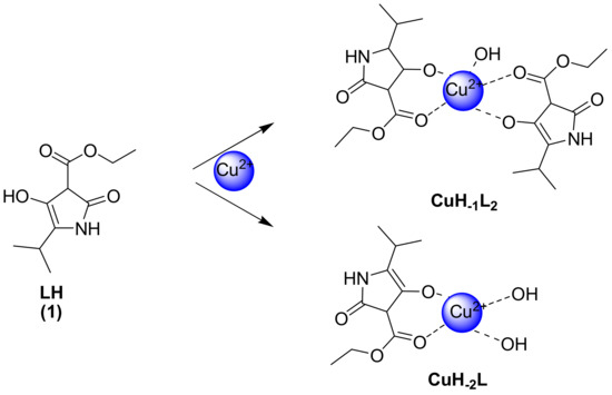 Figure 9. Structures of the Cu(II) complexes with compound 1 at the physiological pH [34].