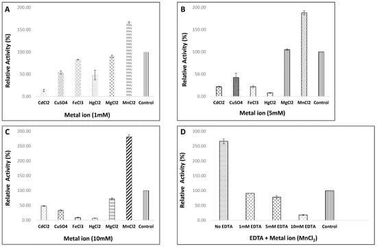 2.7.2. Influence of Different Substrates, Metal Ions and EDTA on Enzyme Activity of Strain, HM48