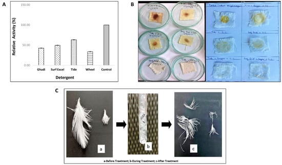 - Rao, C.S.; Sathish, T.; Ravichandra, P.; Prakasham, R. Characterization of thermo- and detergent stable serine protease from isolated Bacillus circulans and evaluation of eco-friendly applications. Process. Biochem. 2009, 44, 262–268. [Google Scholar] [CrossRef]