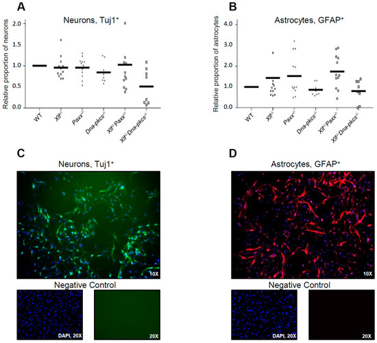 3.2. Impact of XLF, PAXX, and DNA-PKcs on Differentiation Capacity of Neural Stem and Progenitor Cells
