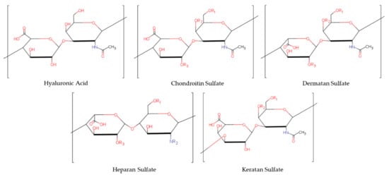 - Caterson, B.; Melrose, J. Keratan sulfate, a complex glycosaminoglycan with unique functional capability. Glycobiology 2018, 28, 182–206. [Google Scholar] [CrossRef] [PubMed]