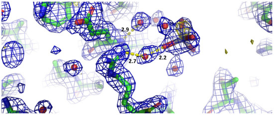 - Emsley, P.; Lohkamp, B.; Scott, W.G.; Cowtan, K. Features and development of Coot. Acta Crystallogr. D Biol. Crystallogr. 2010, 66, 486–501. [Google Scholar] [CrossRef]