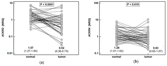 - The Human Protein Atlas. Available online: https://www.proteinatlas.org/ENSG00000144648-ACKR2/pathology (accessed on 17 November 2020).