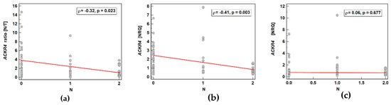 | CCL4 | r = 0.25, p = 0.022 | r = 0.43, p = 0.002 |