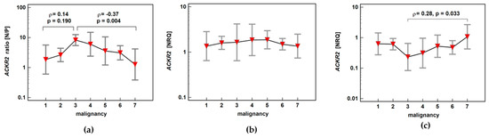 Chicago/Turabian StyleLewandowska, Paulina, Jaroslaw Wierzbicki, Marek Zawadzki, Anil Agrawal, and Małgorzata Krzystek-Korpacka. 2021. "Biphasic Expression of Atypical Chemokine Receptor (ACKR) 2 and ACKR4 in Colorectal Neoplasms in Association with Histopathological Findings" Biomolecules 11, no. 1: 8. https://doi.org/10.3390/biom11010008