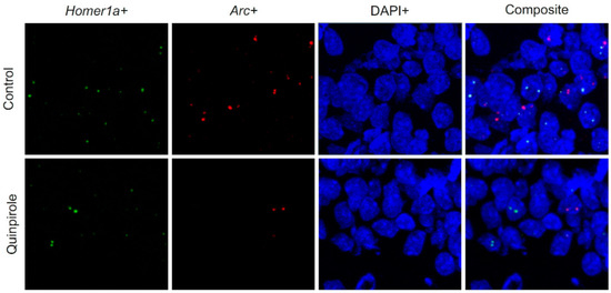 We found that the expression of Homer1a and Arc in OFC, ACC, and mPFC remained comparable in QNP treated and control rats. Similarly, to our results, studies using MicroPET/CT and local cerebral glucose utilization using the [14C]2-deoxyglucose (2-DG) did not detect statistically significant changes in OFC, ACC or mPFC following QNP treatment [40,41]. In contrast, Asaoka et al. reported that OFC was hyperactive in QNP treated rats using electrophysiological recordings [41]. However, plasticity-related IEG expression may not directly correspond to changes in electrophysiological hyperactivity.