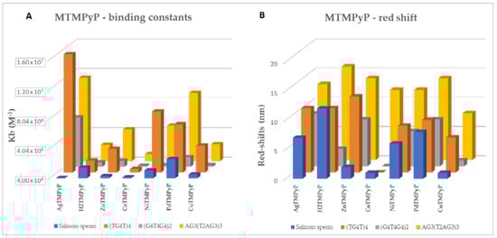 The results obtained for these two series of metalloporphyrins based on the ligands MTGP and MTMPy2PP were then compared with those reported for the corresponding H2TMPyP. The authors noted that, when compared to the metalated MTMPyP porphyrin series, it is striking that the influence of the metal is completely different. From this study, the authors conclude that the MTGP and MTMPy2PP porphyrins were better GQ ligands than their MTMPyP counterparts and, on the contrary to the H2TMPyP metal derivatives, the metal had no influence on the observed dissociation constant (KD) values.