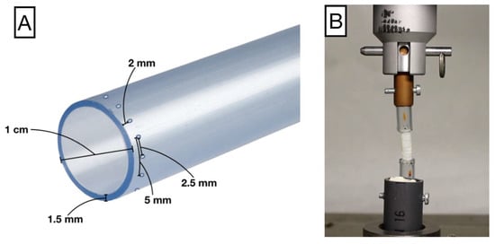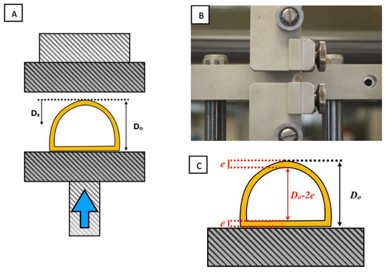 Radial compression tests were performed on a desktop Microtest UTM (Microtest; Madrid, Spain) displacement control equipped with a 15 N load cell with Microtest SCM3000 95 software (Microtest, Madrid, Spain) (force resolution 0.001 N, position 0.001 mm, and time 0.1 s) to obtain force data (N), position (mm) and time (s). Data were recorded and exported at 0.5 s intervals to Microsoft Excel.