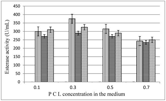 Esterase activity (48 h) in different PCL concentration in the medium;