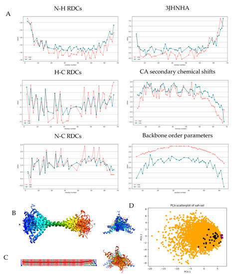 - Marsh, J.A.; Baker, J.M.R.; Tollinger, M.; Forman-Kay, J.D. Calculation of Residual Dipolar Couplings from Disordered State Ensembles Using Local Alignment. J. Am. Chem. Soc. 2008, 130, 7804–7805. [Google Scholar] [CrossRef]