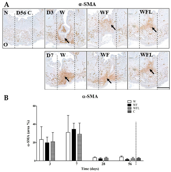 3.4. Effects of Fibrin Constructs on α-SMA Expression Following Injury