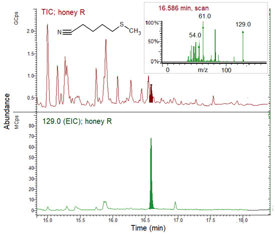 - Soria, A.C.; Martínez-Castro, I.; de Lorenzo, C.; Sanz, J. Occurrence of nitriles in Taraxacum labelled honeys. Food Chem. 2008, 107, 439–443. [Google Scholar] [CrossRef]