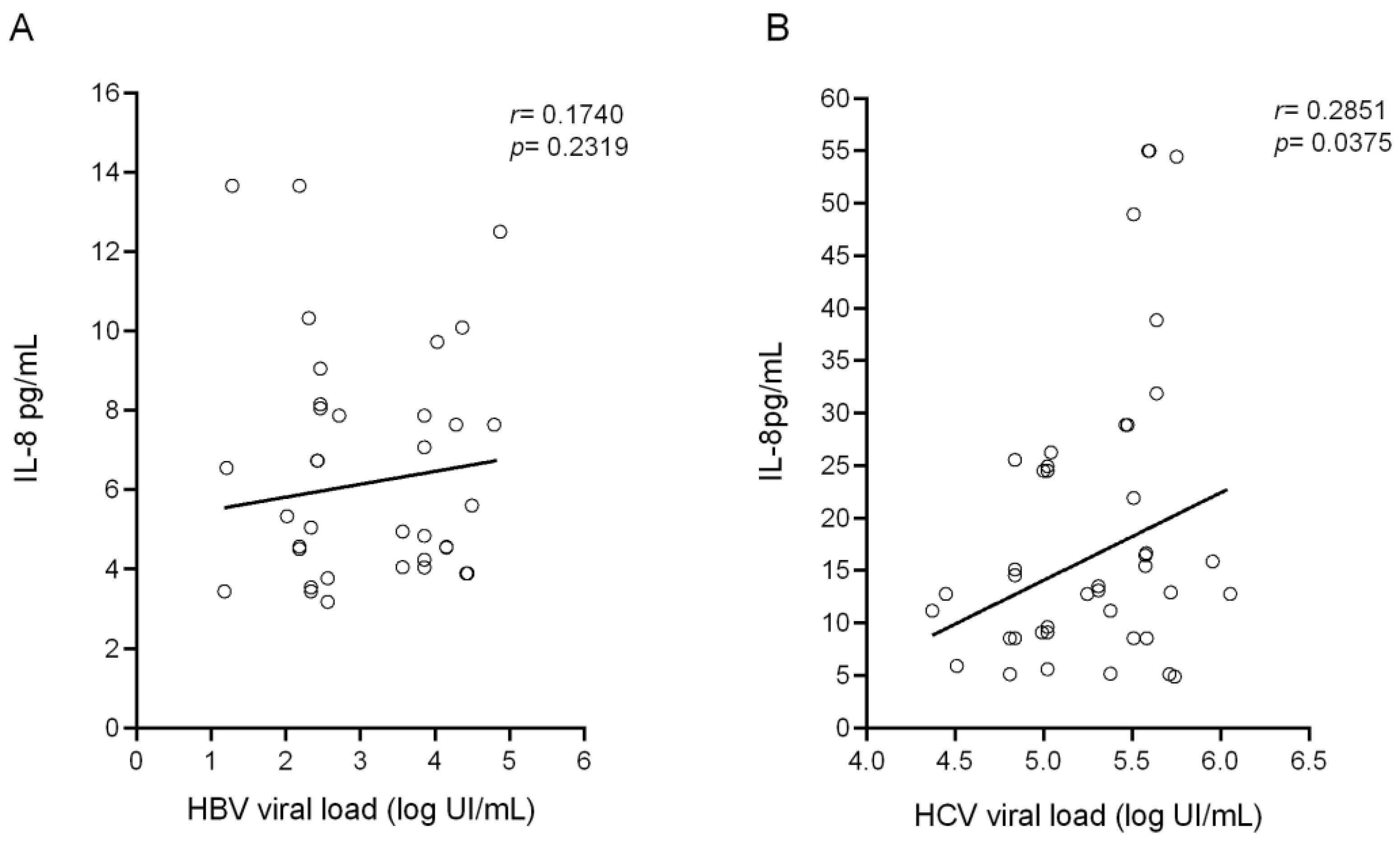 - Qin, X.; Deng, Y.; Liao, X.-C.; Mo, C.-J.; Li, X.; Wu, H.-L.; He, Y.-N.; Huang, X.-M.; Peng, T.; Chen, Z.-P.; et al. The IL-8 Gene Polymorphisms and the Risk of the Hepatitis B Virus/Infected Patients. DNA Cell Biol. 2012, 31, 1125–1130. [Google Scholar] [CrossRef]