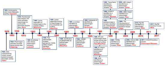 - Didiasova, M.; Wujak, L.; Wygrecka, M.; Zakrzewicz, D. From Plasminogen to Plasmin: Role of Plasminogen Receptors in Human Cancer. Int. J. Mol. Sci. 2014, 15, 21229–21252. [Google Scholar] [CrossRef]