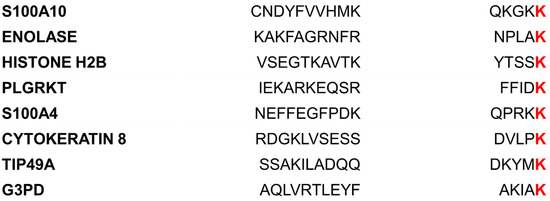 - Glenney, J.R.; Tack, B.F. Amino-Terminal Sequence of P36 and Associated P10: Identification of the Site of Tyrosine Phosphorylation and Homology with S-100. Proc. Natl. Acad. Sci. USA 1985, 82, 7884–7888. [Google Scholar] [CrossRef]