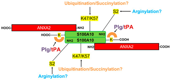 Bharadwaj, A.G.; Kempster, E.; Waisman, D.M. The ANXA2/S100A10 Complex—Regulation of the Oncogenic Plasminogen Receptor. Biomolecules 2021, 11, 1772. https://doi.org/10.3390/biom11121772