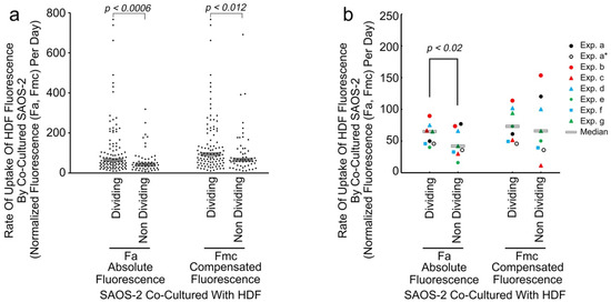 3.1. There Was Marked Transfer of HDF Fluorescent Label to SAOS-2 during Co-Culture