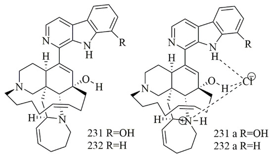 Marine alkaloids present unique chemical structures that have been widely distributed among marine organisms. Some of them represent derivative molecules of the commonly encountered terrestrial alkaloids, whereas others show unprecedented novel structures confined to the marine systems. Their purification, structure elucidation, stereochemistry, chemical modification, synthesis, and pharmaceutical activity have acquired outstanding interdisciplinary attention from various fields of research aside from chemistry, including physiology, and pharmacology, ecology, biotechnology [1]. Alkaloids represent one of the most important classes of natural products that are widely distributed among different biological sources, including plants, animals, fungi, cyanobacteria, actinomycetes, dinoflagellates, red algae, cnidarians, and bryozoans; however, their presence in marine invertebrates as major constituents is limited to specific phylum, including some sponge genera, ascidians, mollusks, red algae, and bryozoans. Although the exact physiological function of alkaloids remains unclear, many of them had been developed as defense chemical weapons against predation—this is of great importance, especially for vulnerable sessile organisms, like sponges, and consequently, they are expected to be very potent molecules demonstrating toxicity at low doses [2,3,4].