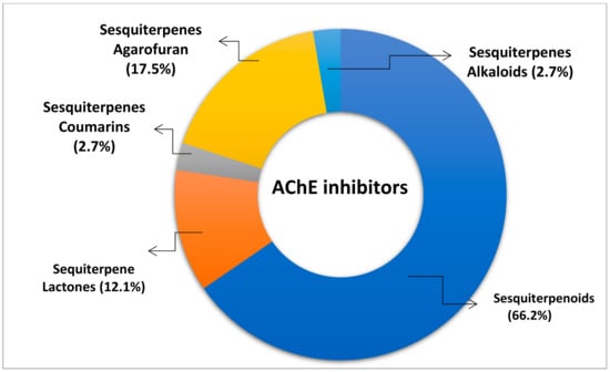 Figure 5. Percentage of various categories of sesquiterpenes with AChE inhibitory potential.
